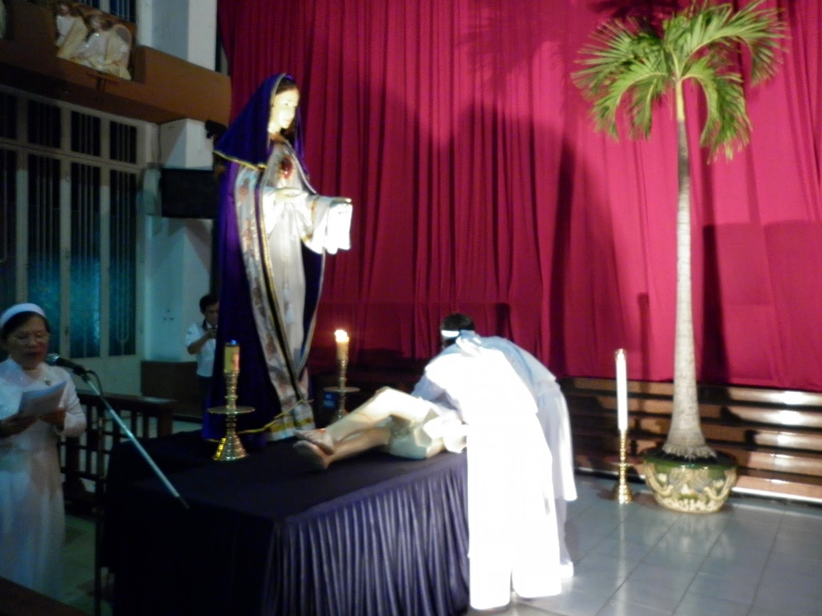 Cha chủ sự nằm phủ phục trước bàn thánh